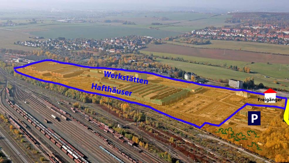 Nur nochmal zur Erinnerung so sieht der B-Plan aus ( PDF: JVA in der Planung (B-Plan)). Somit ergibt das Foto folgende Aufteilung, wie unten dargestellt.